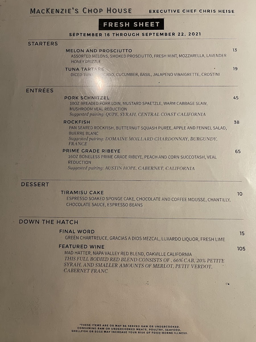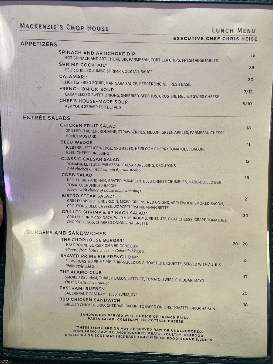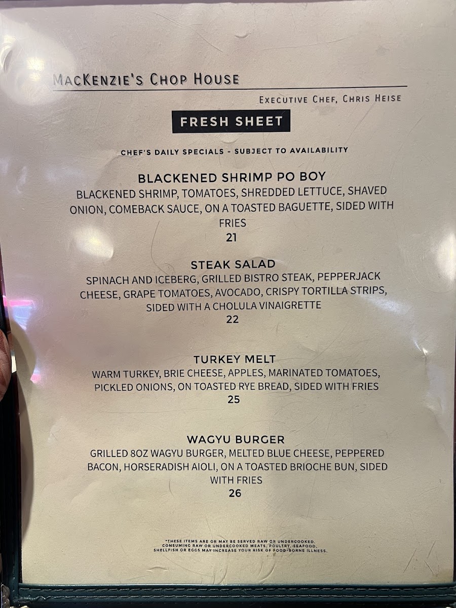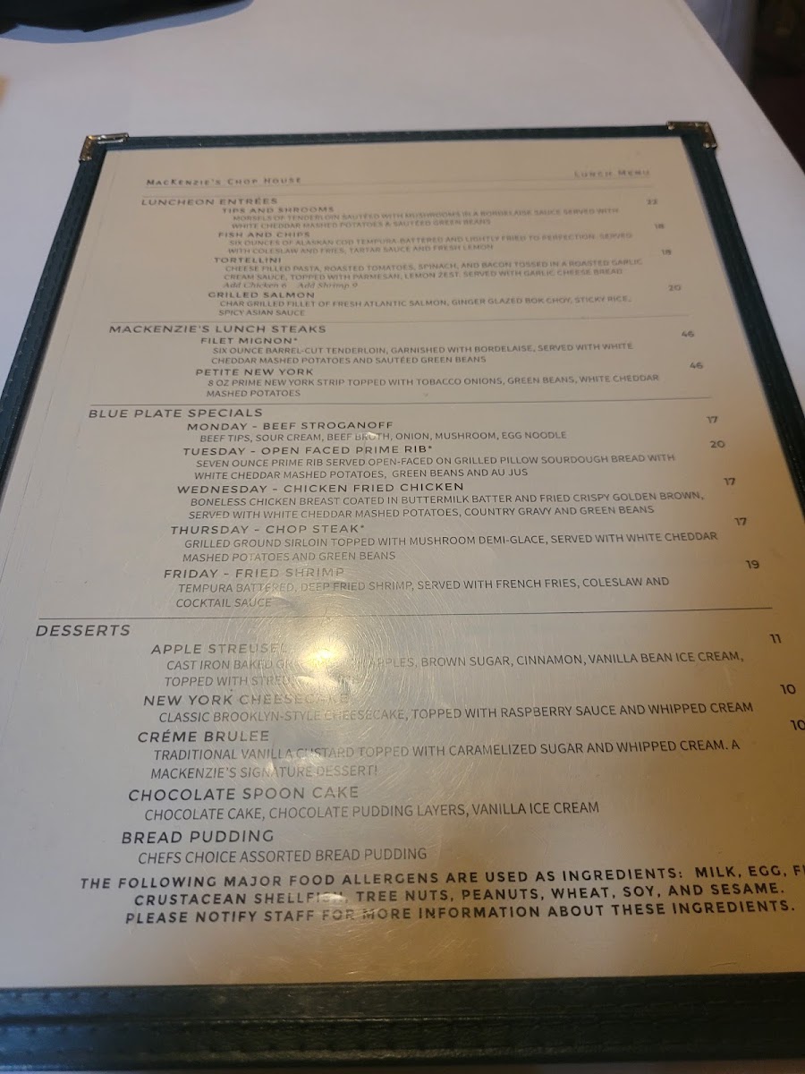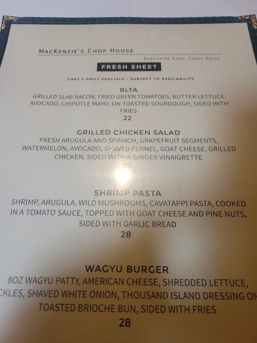 MacKenzie's Chop House Menu